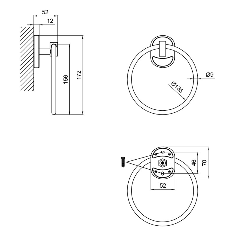 Держатель для полотенца Lidz Oreo 0305 D-135 Chrome - это настенный аксессуар для ванной комнаты, выполненный в форме кольца с хромированным покрытием.