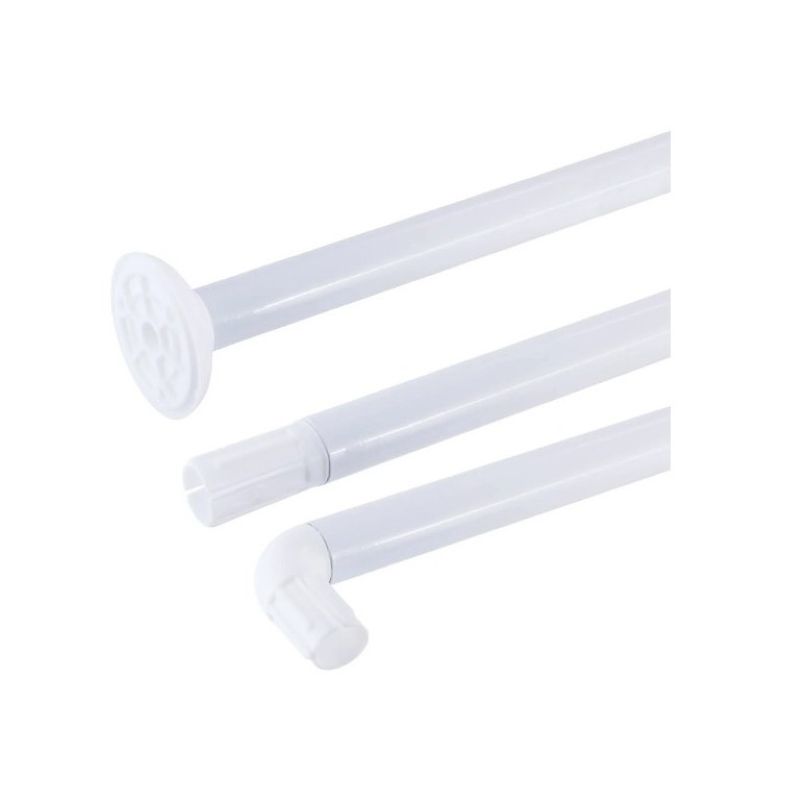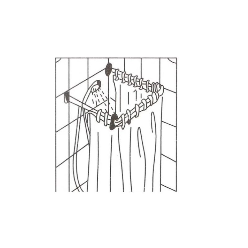 Карниз для ванной угловой белый, выполнен из трех труб длинной по 90 см каждая, которые можно соединить в форме буквы "Г" в размерах 90*90 или 180*90 или буквы "П" в размере 90*90*90. Трубки металлические, крепление пластиковое. Крепится путем сверления стен, на усиленных фланцах 3-мя дюбелями.