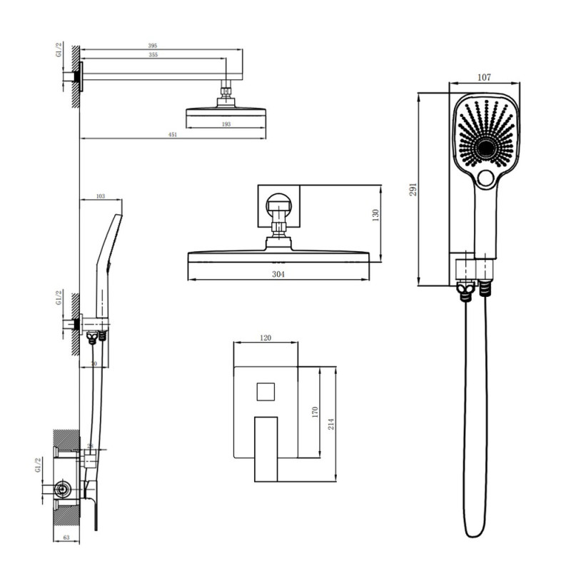 Размеры верхнего душа - 107х291 мм
