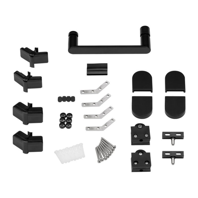 Комплектация - душевые стекла, комплект креплений, петли, ручка