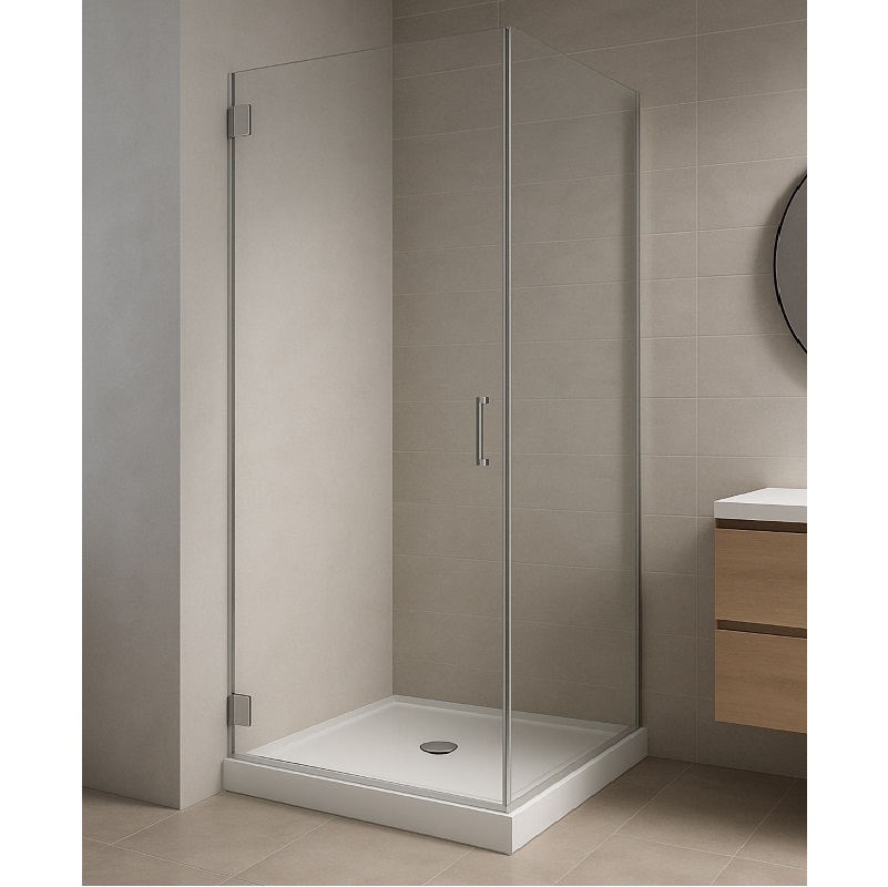 Особенности данной модели душевого уголка: форма - квадратная, распашная конструкция двери, прозрачное полотно двери. Все это делает душевую кабину функциональной и практичной.
