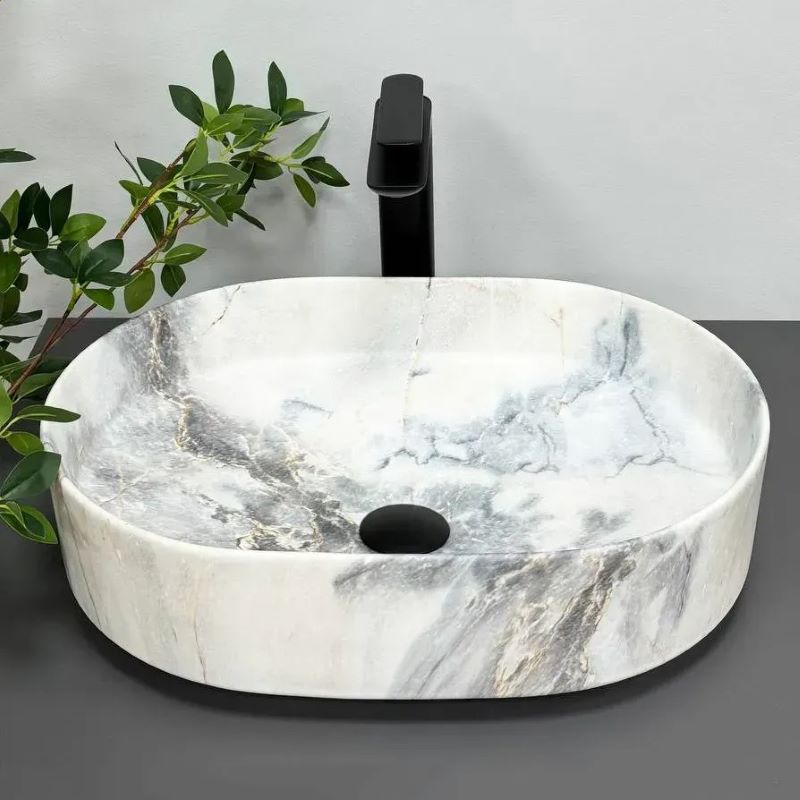 Раковина VBI A MODENA - стильная современная модель с овальной чашей для установки на столешницу. Умывальник отличается современным дизайном с закругленным силуэтом, что придает изысканность и утонченность. Модель VBI MODENA BEIGE STONE – имеет уникальный узор, напоминающий камень с матовым покрытием, придающий свой шик.