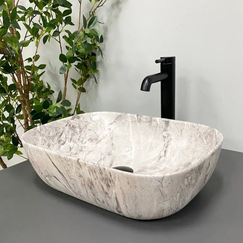 Раковина VBI RAVENNA- стильная современная модель с прямоугольной чашей для установки на столешницу. Умывальник отличается современным дизайном с закругленным силуэтом, что придает изысканность и утонченность. Модель имеет уникальный узор, напоминающий камень с матовым покрытием, придающим свой шик.