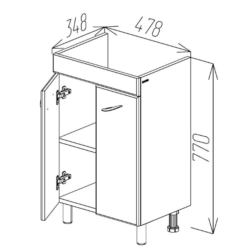 Напольная тумба под умывальник Neon 50 оснащена двумя распашными дверьми. Корпус выполнен из ДСП в белом цвете, имеет дополнительное матовое покрытие. Фасад состоит из белых лицевых панелей, которые выполнены из МДФ и окрашены влагостойкой матовой краской.