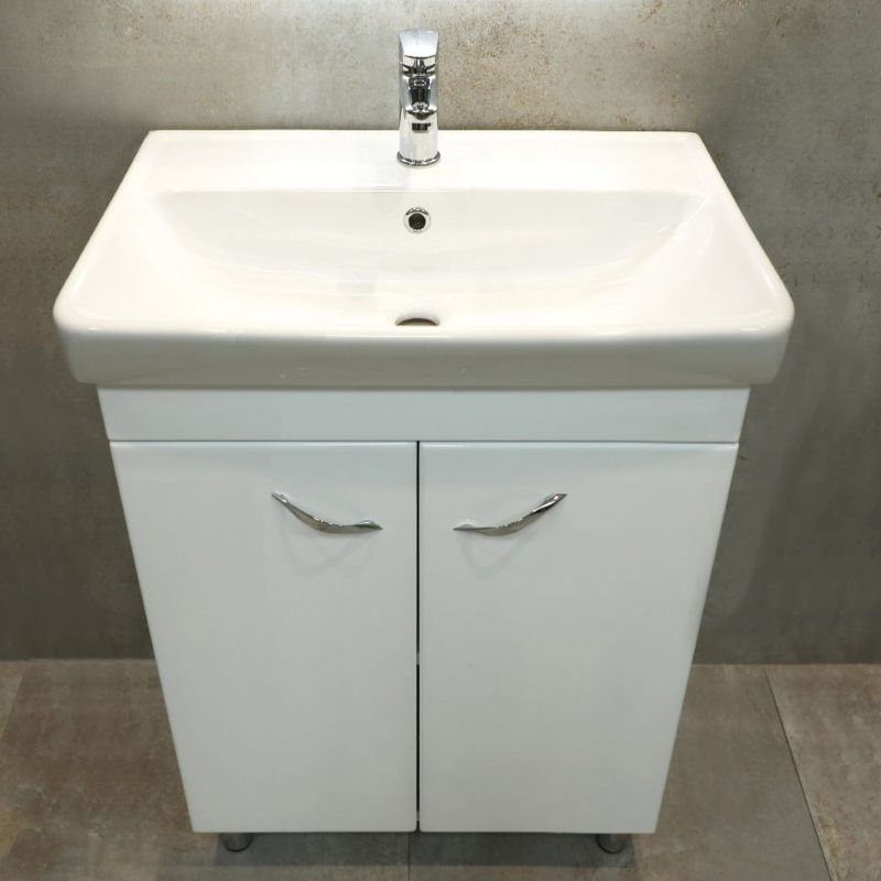 Напольная тумба под умывальник Neon 60 оснащена двумя распашными дверьми. Корпус выполнен из ДСП в белом цвете, имеет дополнительное матовое покрытие. Фасад состоит из белых лицевых панелей, которые выполнены из МДФ и окрашены влагостойкой матовой краской.