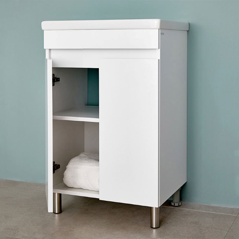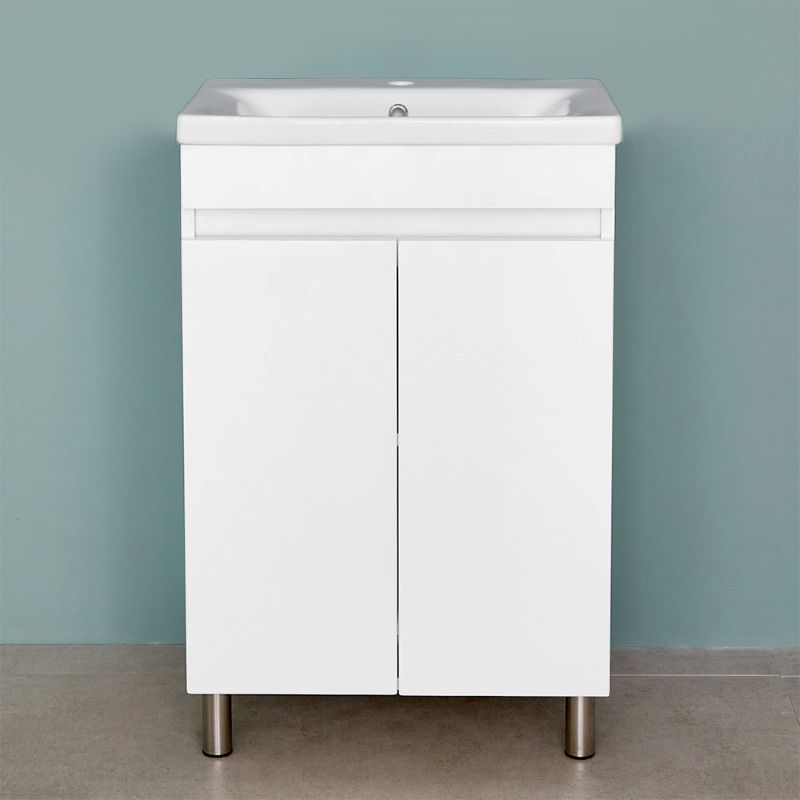 Напольная тумба под умывальник Soft 65 оснащена двумя распашными дверьми. Корпус выполнен из ДСП в белом цвете, имеет дополнительное матовое покрытие. Фасад состоит из белых лицевых панелей, которые выполнены из МДФ и окрашены влагостойкой матовой краской. Ручки в данной тумбе фрезерованные.