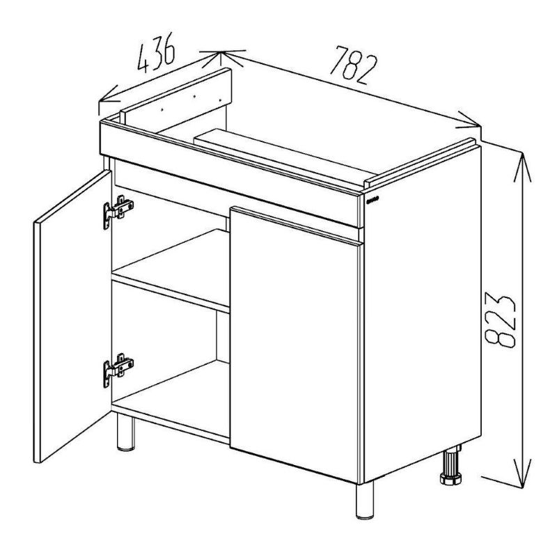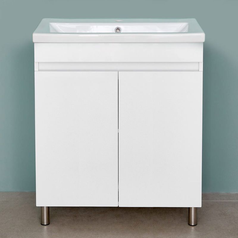 Напольная тумба под умывальник Como 80 оснащена двумя распашными дверьми. Корпус выполнен из ДСП в белом цвете и имеет дополнительное матовое покрытие. Фасад состоит из белых лицевых панелей, которые выполнены из МДФ и окрашены влагостойкой матовой краской. Ручки в данной тумбе фрезерованные.