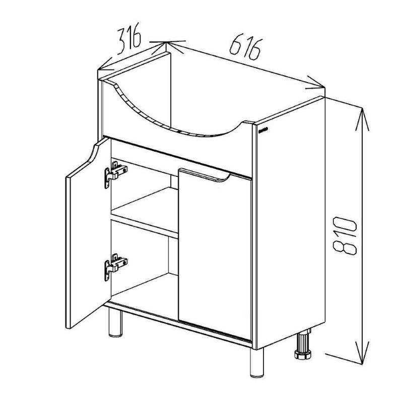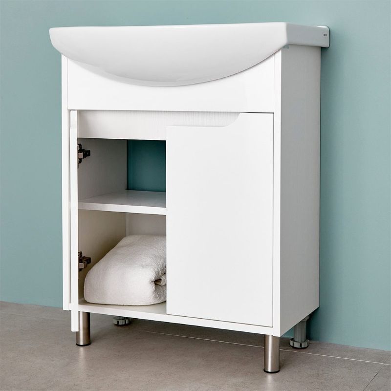 Напольная тумба под умывальник Zenon 65 оснащена двумя распашными дверьми. Корпус выполнен из ДСП в белом цвете, имеет дополнительное матовое покрытие. Фасад состоит из белых лицевых панелей, которые выполнены из МДФ и окрашены влагостойкой матовой краской. Ручки в данной тумбе фрезерованные.