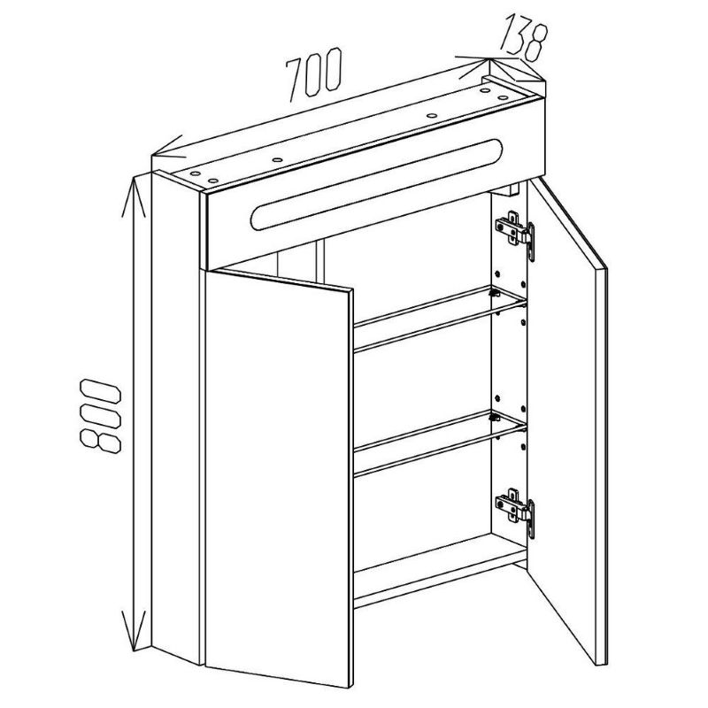 • Внутреннее пространство: За зеркальной дверцей располагаются стеклянные полки, регулируемые по высоте.