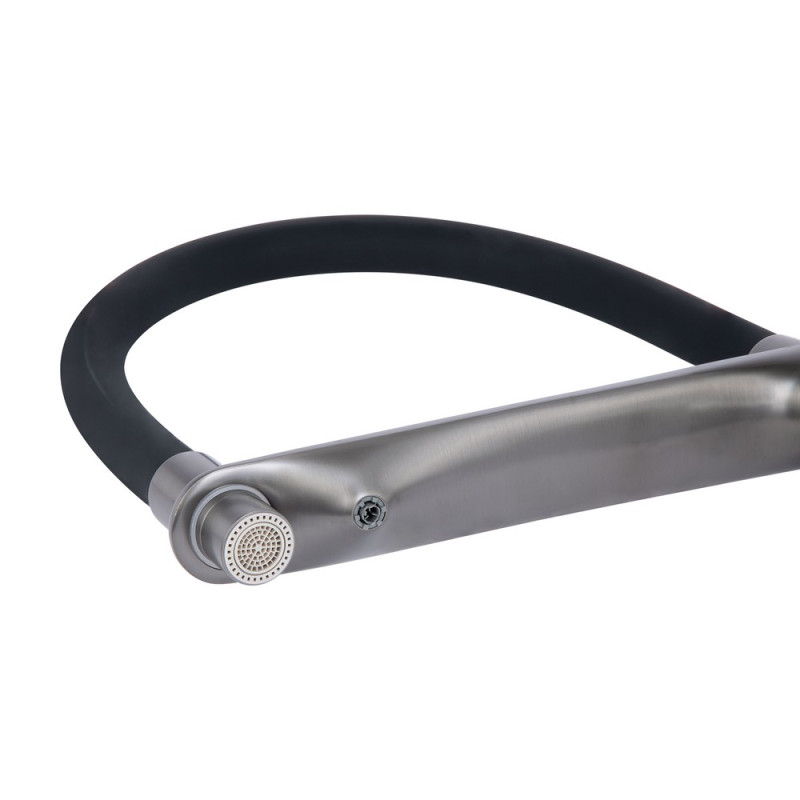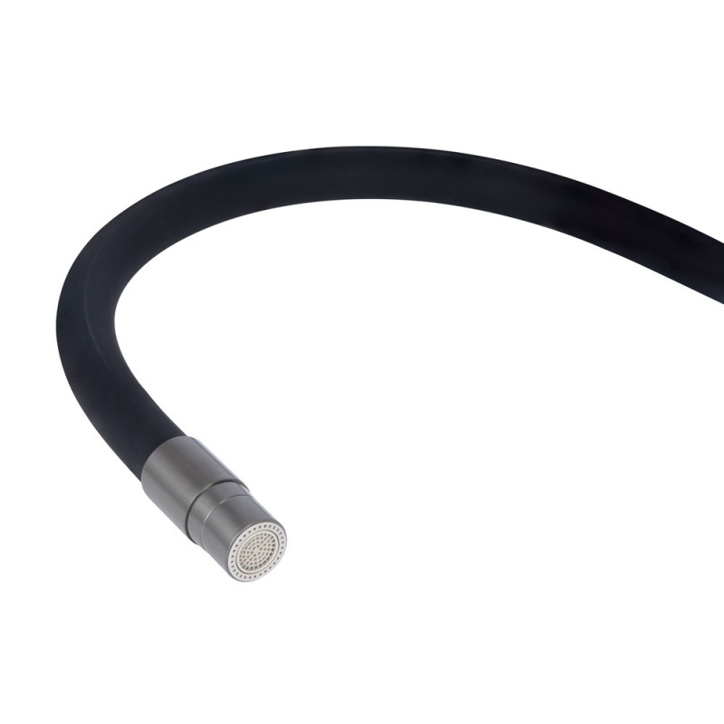 Смеситель для кухни с выдвижным изливом Qtap Evicka изготовлен из высококачественной латуни с матовым покрытием в цвете оружейной стали, обеспечивающей долговечную бесперебойную работу изделия.