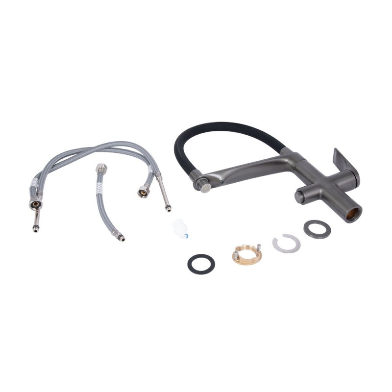 Смеситель для кухни под осмос Qtap Vlasta графит с черным гибким изливом
