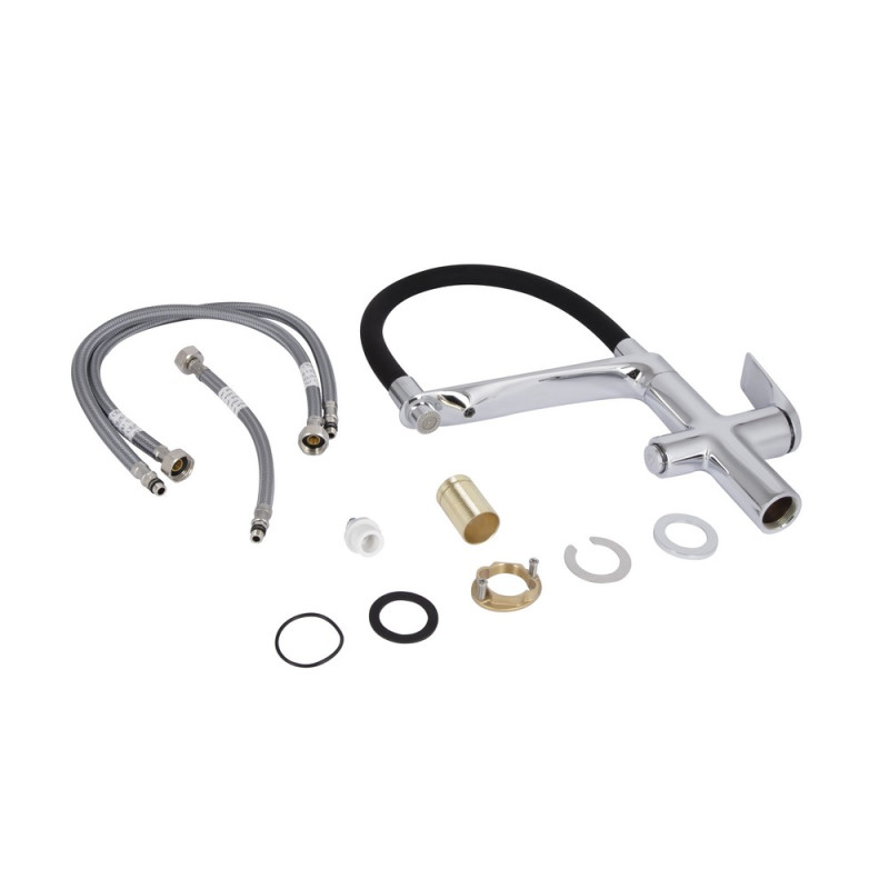 Комплектация - смеситель, гибкая подводка 1/2" 560 мм, резиновые прокладки, крепление