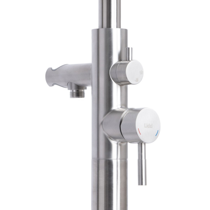 Смеситель выполнен из нержавеющей стали, что гарантирует длительный срок эксплуатации. Для включения подачи воды достаточно поднять рычаг и повернуть его в необходимую сторону.