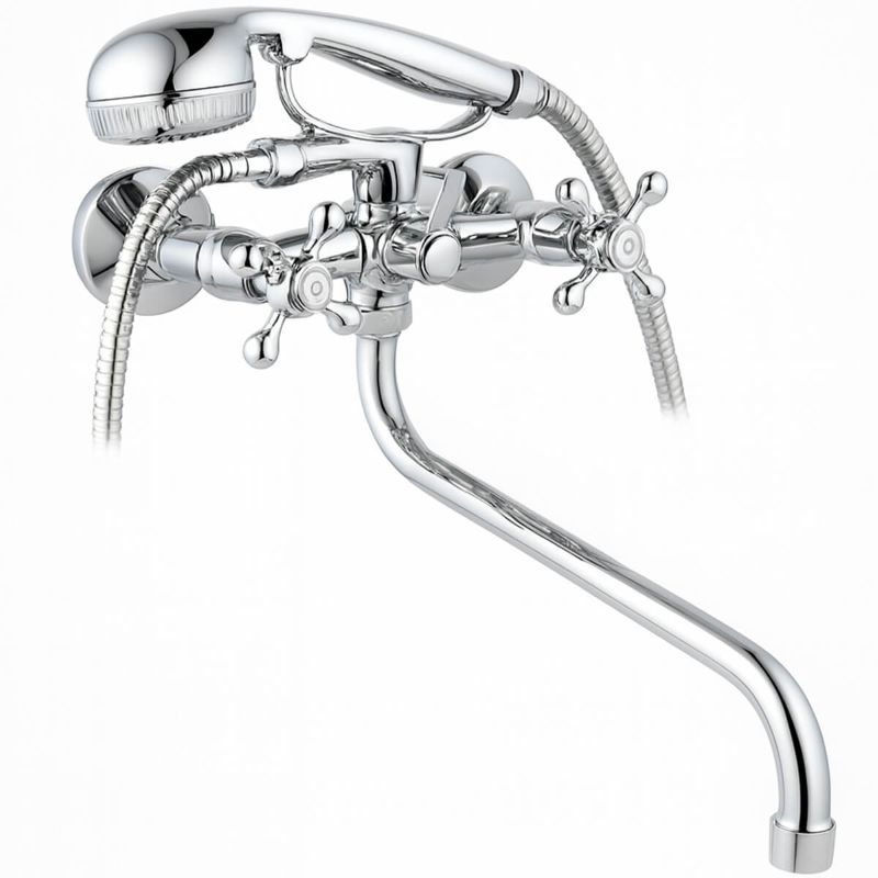 Двухвентильный смеситель Rosinka оптимально подойдет для интерьера ванной комнаты, выполненного в традиционном стиле.