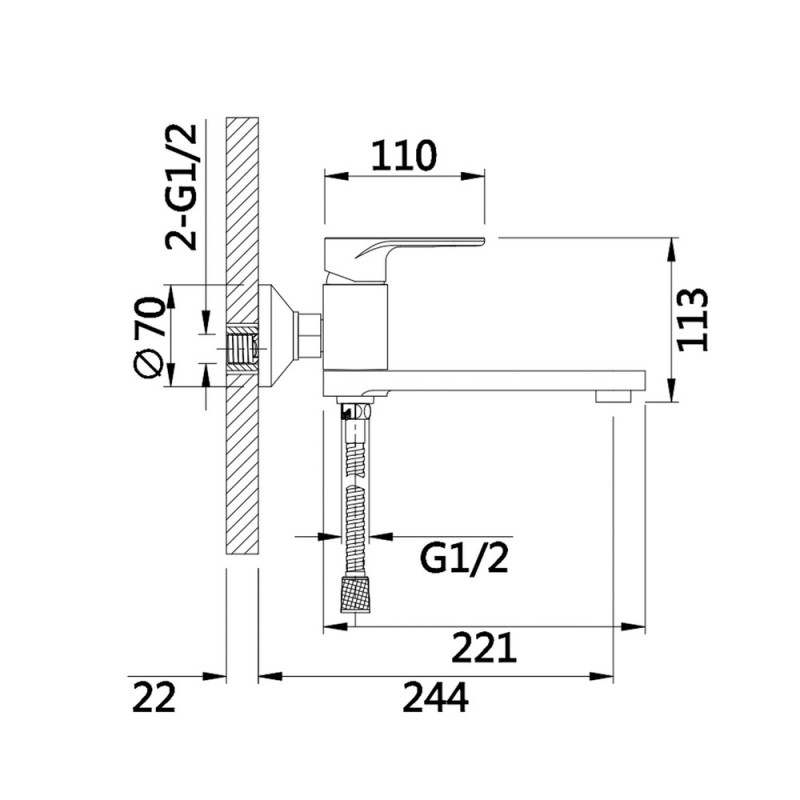 Комплектация - смеситель, эксцентрики, чашки декоративные (хромированные), резиновые прокладки, лейка, шланг
