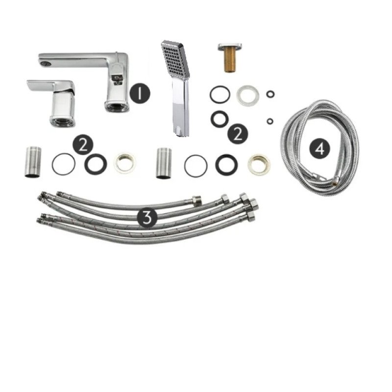 - Комплектация: Смеситель, душевая лейка (1 режим), шланг, крепеж.