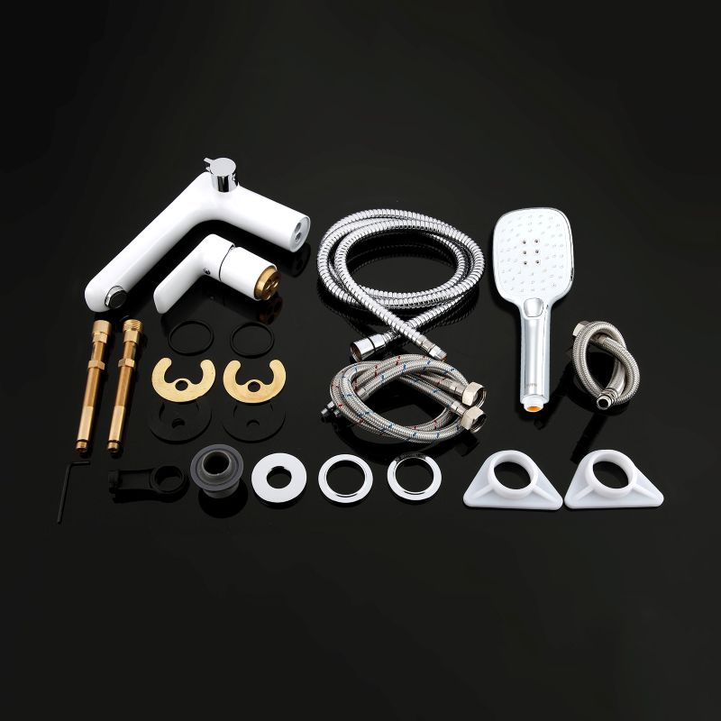 Этот смеситель сочетает в себе хромированную отделку с белыми элементами. Дизайн смесителя обеспечивает экономию места и создает более пространственный вид ванной комнаты.