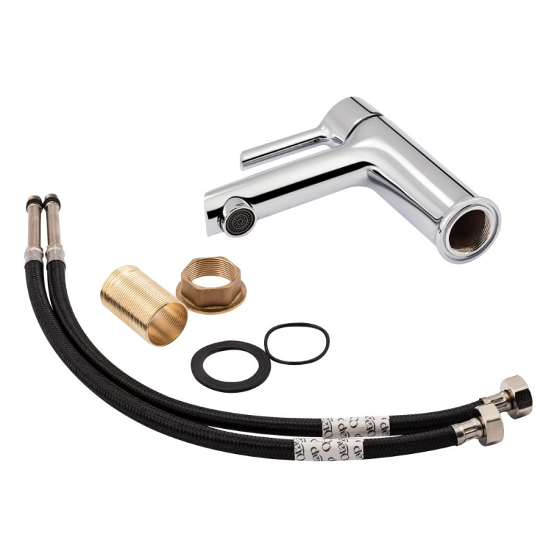 Комплектация - смеситель, гибкая подводка 1/2" 390 мм, резиновые прокладки, крепление